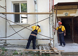 Вздутия и трещины на фасаде есть на несколькоих этажах дома бизнес-класса.